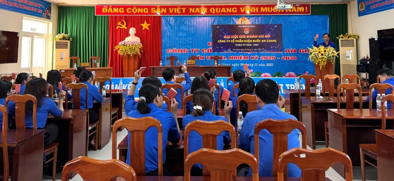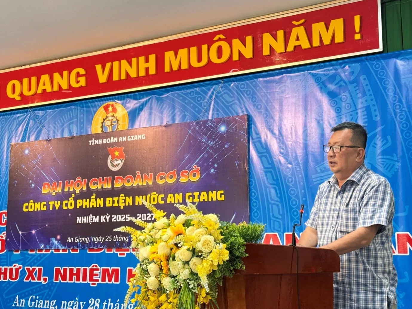 Ngày 25/11/2025, Chi đoàn cơ sở Công ty Cổ phần Điện Nước An Giang đã tổ chức thành công Đại hội Chi đoàn nhiệm kỳ 2025–2027. Đại hội vinh dự đón tiếp đồng chí Lê Việt Anh – Phó Bí thư Đảng ủy, Tổng Giám đốc Công ty đến dự và chỉ đạo, cùng sự hiện diện của 28 đoàn viên Chi đoàn.