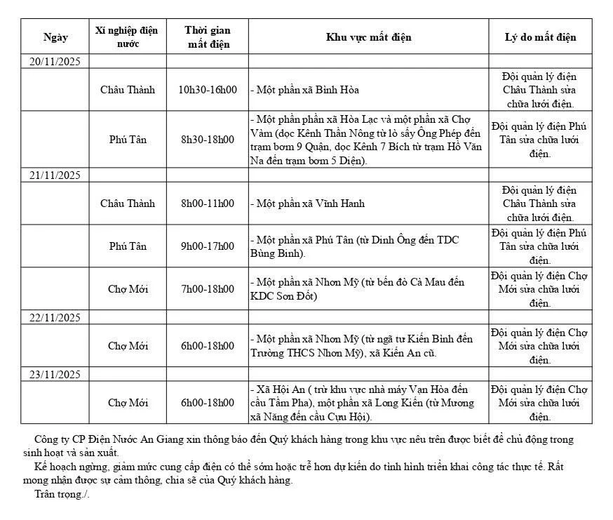 Thông báo lịch ngừng, giảm mức cung cấp điện (Từ ngày 16/11/2025 đến ngày 23/11/2025) https://diennuocag.com.vn/cupdien16-23-11-25 https://diennuocag.com.vn/cupdien16-23-11-25#respond Wed, 19 Nov 2025 00:31:49 +0000 https://diennuocag.com.vn/?p=2250
