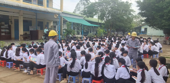 • (3) Tuyên truyền tại Trường học: phổ biến quy định an toàn điện, phòng chống cháy nổ; hướng dẫn học sinh nhận biết nguy cơ tai nạn điện. Đã triển khai tại 25 điểm trường THCS, THPT và phát 9.846 tờ bướm hướng dẫn an toàn sử dụng điện và bảo vệ an ninh nguồn nước.