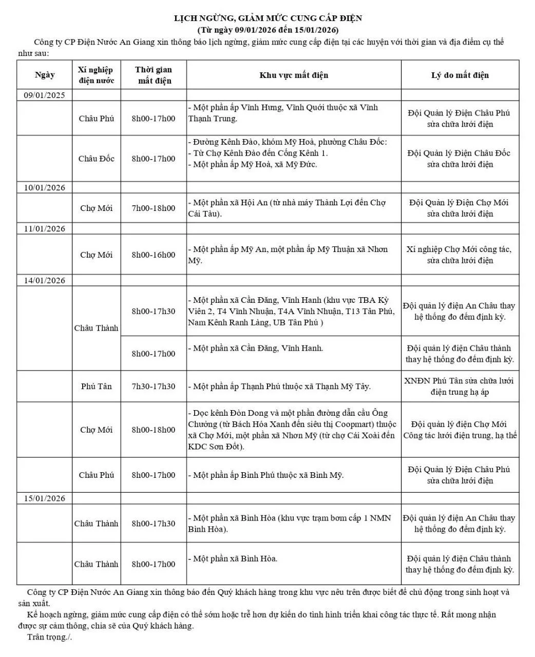 Thông báo lịch ngừng, giảm mức cung cấp điện (Từ ngày 01/01/2026 đến ngày 08/01/2026) https://diennuocag.com.vn/cupdien01-08-01-26 https://diennuocag.com.vn/cupdien01-08-01-26#respond Fri, 02 Jan 2026 00:37:47 +0000 https://diennuocag.com.vn/?p=2387