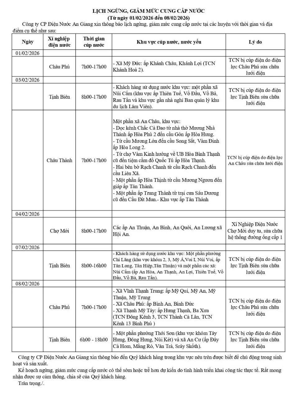 Thông báo lịch ngừng, giảm mức cung cấp điện (Từ ngày 01/02/2026 đến ngày 08/02/2026) https://diennuocag.com.vn/cupdien01-08-02-26 https://diennuocag.com.vn/cupdien01-08-02-26#respond Tue, 03 Feb 2026 01:51:45 +0000 https://diennuocag.com.vn/?p=2432