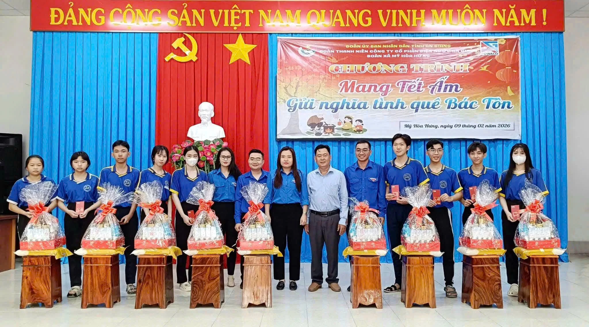 Powaco https://diennuocag.com.vn Công ty cổ phần điện nước An Giang Wed, 11 Feb 2026 01:58:33 +0000 vi hourly 1 Hành trình “Mang Tết ấm – Gửi nghĩa tình quê Bác Tôn” tại xã Mỹ Hòa Hưng https://diennuocag.com.vn/traoquamhh https://diennuocag.com.vn/traoquamhh#respond Wed, 11 Feb 2026 01:51:24 +0000 https://diennuocag.com.vn/?p=2446 Trong không khí ấm áp của những ngày cận Tết, Đoàn Thanh niên Công ty Cổ phần Điện Nước An Giang (POWACO) đã phối hợp cùng Đoàn Thanh niên xã Mỹ Hòa Hưng thực hiện hành trình đầy ý nghĩa về với quê hương Bác Tôn, mang theo những phần quà xuân thiết thực dành tặng các em học sinh có hoàn cảnh khó khăn.