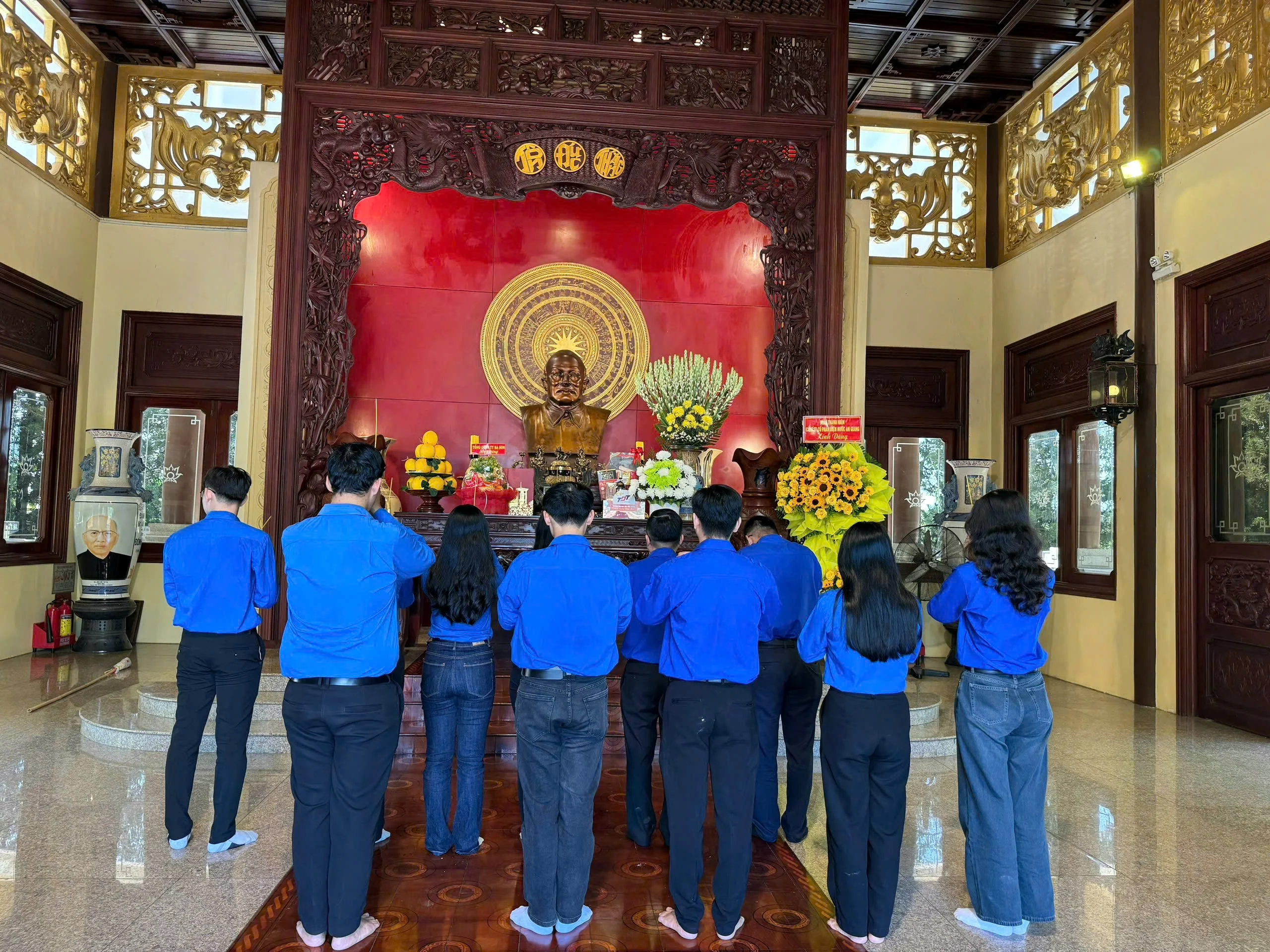 Khởi đầu hành trình, đoàn công tác đã thành kính dâng hoa, dâng hương và dành một phút tưởng niệm Chủ tịch Tôn Đức Thắng tại Đền thờ của Người. Hoạt động này thể hiện lòng biết ơn sâu sắc đối với vị lãnh tụ kính yêu – người con ưu tú của quê hương An Giang, tấm gương sáng ngời về đạo đức cách mạng cho thế hệ cán bộ đoàn viên.